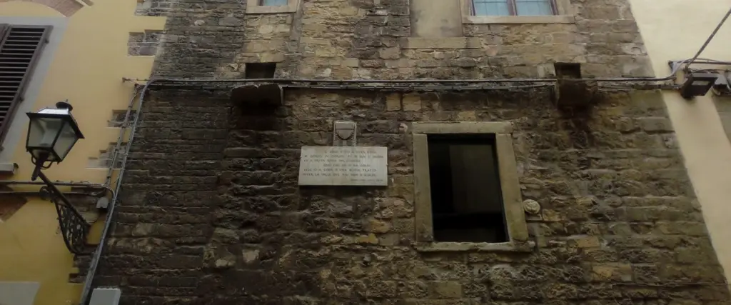 La lapide è posta sulla Torre dei Donati, una delle famiglie più potenti e antiche della città. Siamo nel terzo cerchio, quello dei peccati di gola e Dante è in compagnia di Forese Donati. Inizialmente il Poeta parla della sua patria deplorandone il decadimento morale e, a seguire, Forese ha una premonizione sulla tragica fine di suo fratello Corso (scoprilo attraverso la lapide dantesca di San Salvi).