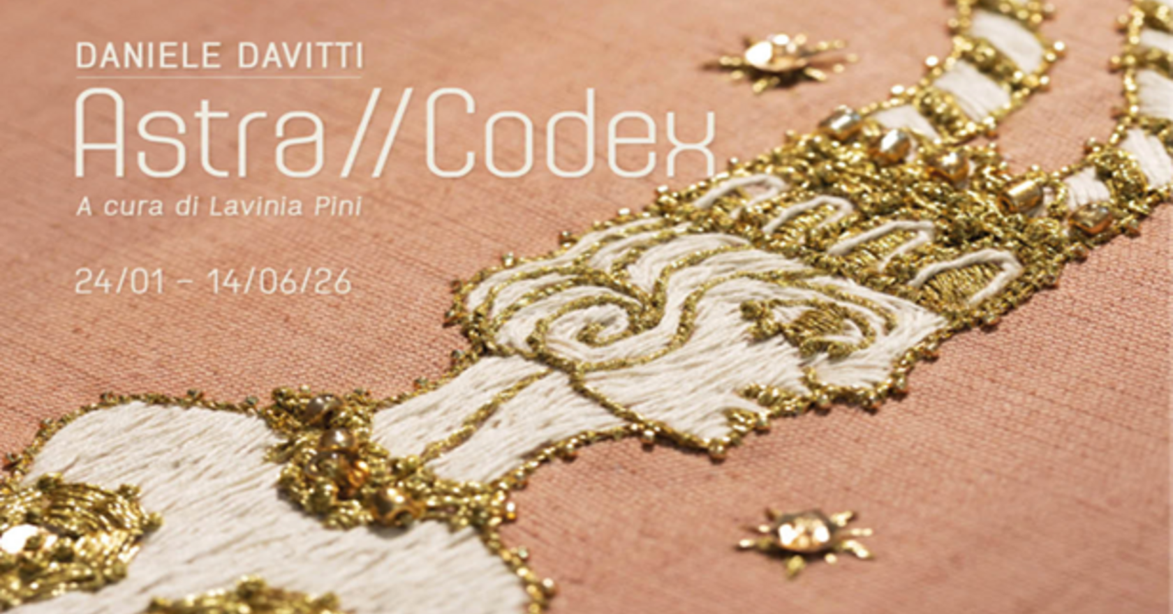 From January to June 2026, the Istituto de’ Bardi in Florence hosts ASTRA CODEX, a textile art exhibition by Daniele Davitti at Palazzo Capponi, curated by Lavinia Pini. Trained between Polimoda and the Bunka Fashion College in Osaka, Davitti has focused exclusively on textile art and embroidery since 2019, earning international recognition, including selection for the 2024 Contextile Biennale and inclusion in the Homo Faber Guide.