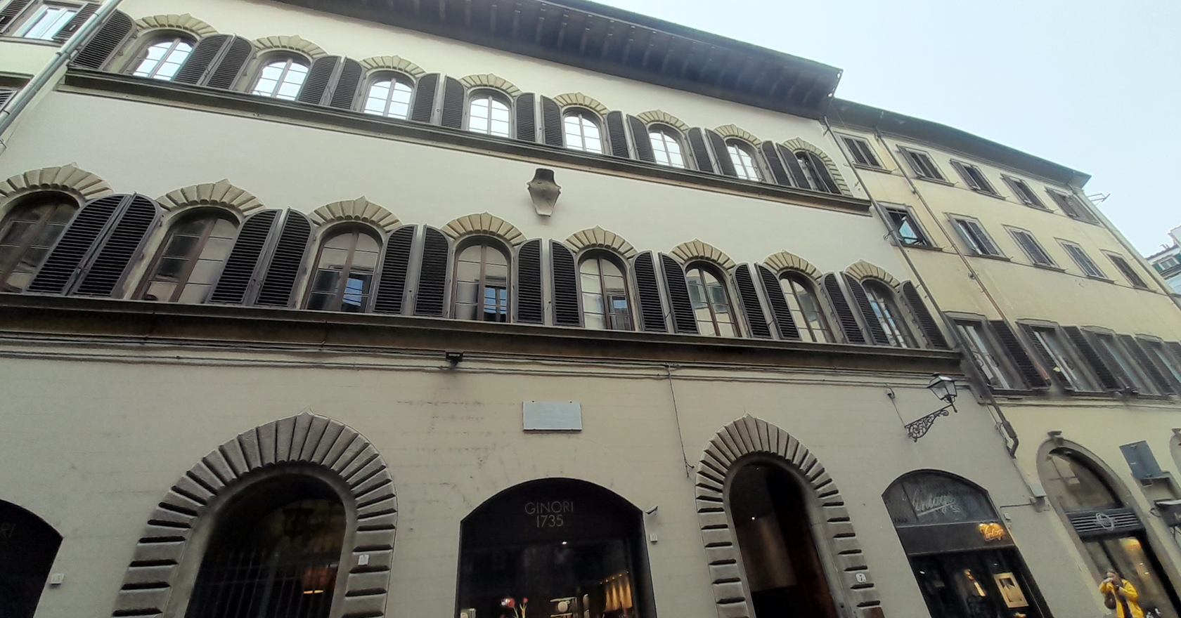 The ownership of the building is indicated by the coat of arms adorning the centre of the façade, bearing the Ginori family crest (azure, a band of gold charged with three six-pointed stars of the field). Carlo Lorenzini, author of Pinocchio and known as Collodi (commemorated by a plaque affixed to the front of the building in 1981), lived in the palace during the period when he was a guest of his brother Paolo, who resided here as manager of the Ginori porcelain factory. A Ginori shop can still be found on the ground floor.