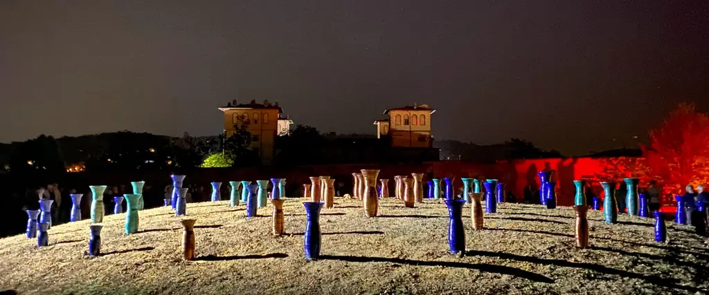 The park surrounding the l'Ambrogiana Medici Villa, in Montelupo Fiorentino hosts, from May 2022, the site specific installation by artist Marco Bagnoli "Settantadue nomi - Italian Garden", made up of 72 vases in blue, green and copper-coloured glazed ceramic, arranged in quincunxes (four elements at the top of the sides of a square and the fifth in the centre), that symbolically represent Earth in the moment of its creation.