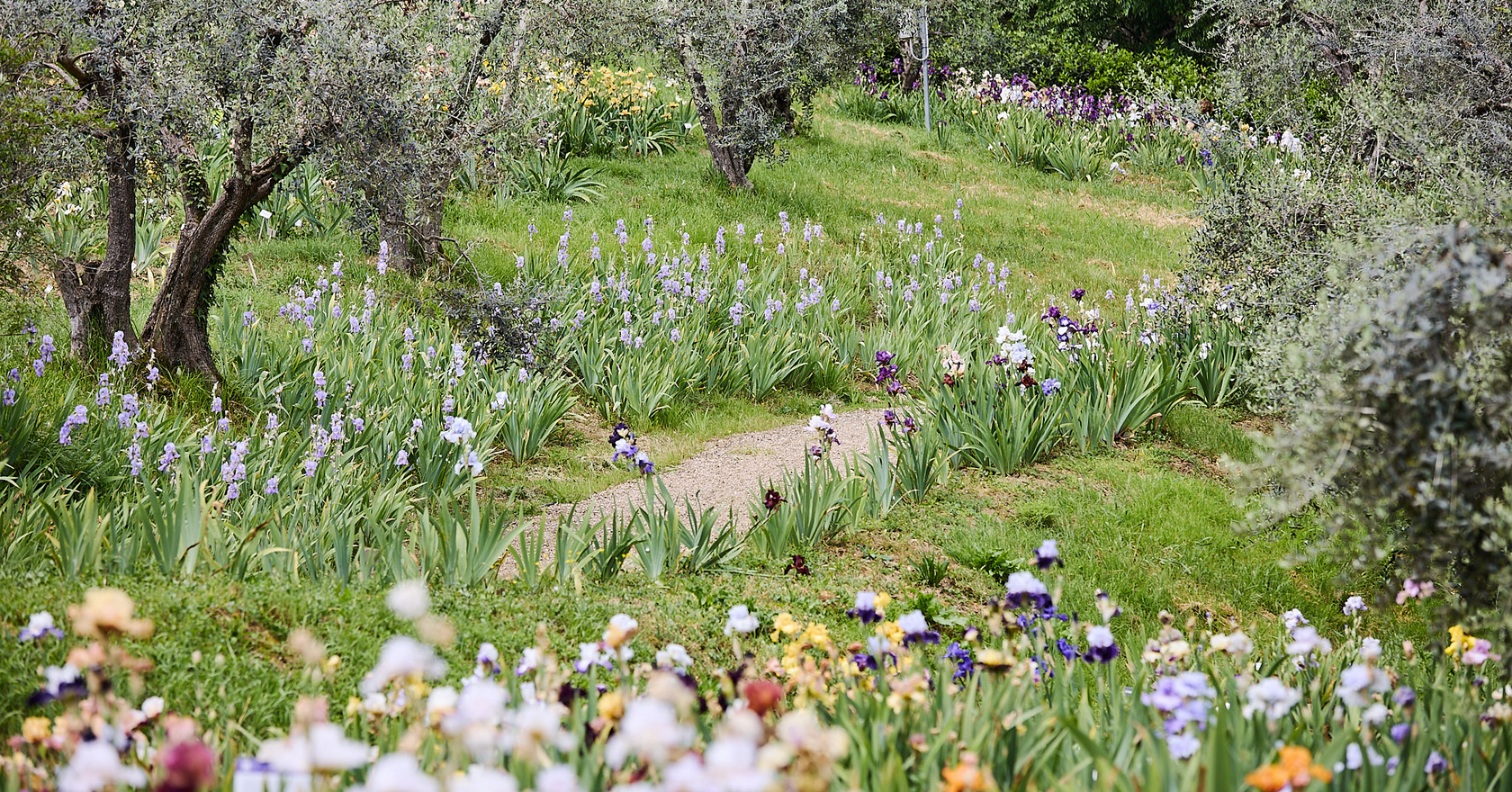 A partir de 1251 el iris es la flor símbolo de Florencia. Desde 1954 en este jardín se cultivan y se conservan 2500 variedades de esta flor. 2.5 hectáreas cubiertas en parte de olivos, con una vista increíble sobre la ciudad. Cada año en el mes de mayo, cuando las plantas florecen, se celebra aquí la exposición-concurso internacional del iris.