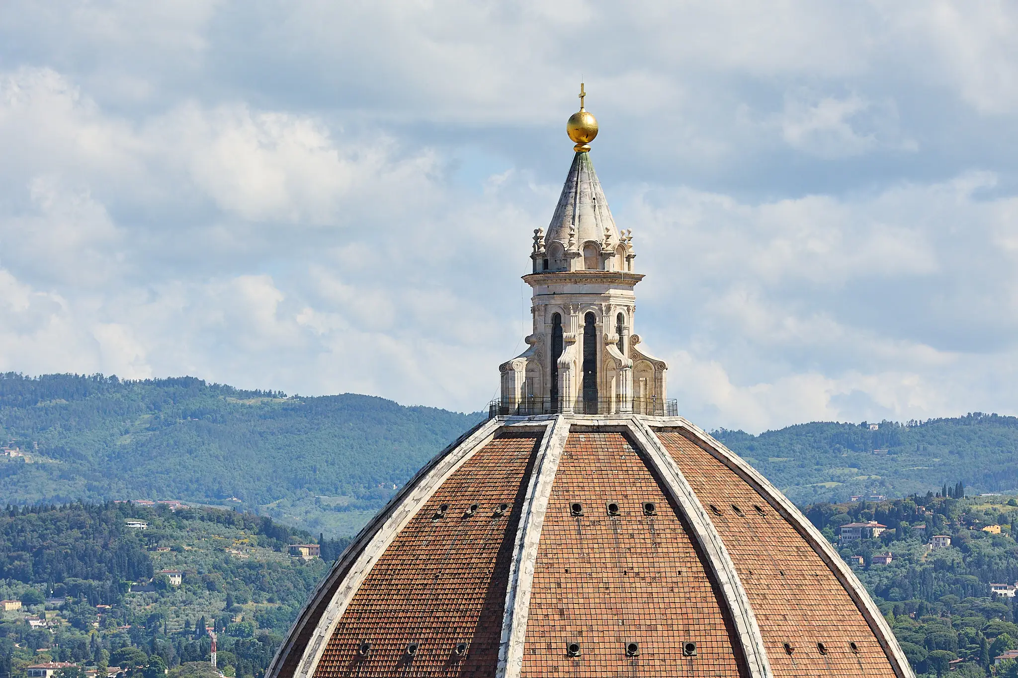 Les visiteurs ayant terminé le parcours à l’intérieur de la structure (pour bien admirer les fresques), peuvent profiter de la magnifique vue sur la ville et les collines environnantes, de la base de la lanterne.