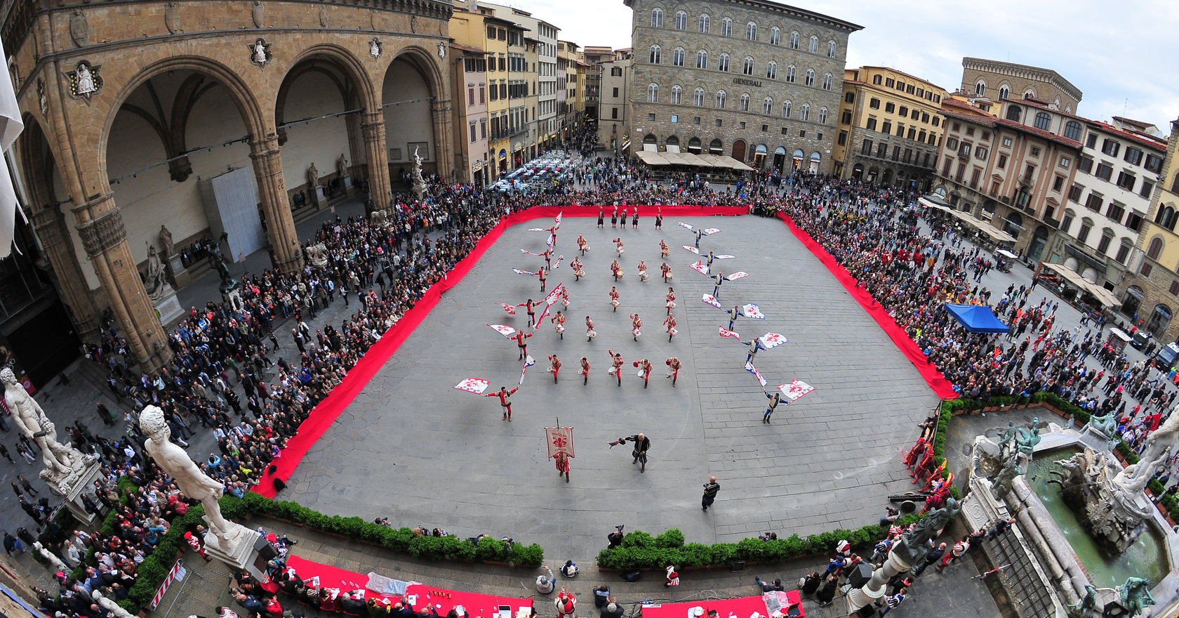 Piazza della Signoria è da sempre luogo centrale della vita politica cittadina diventando così di fatto lo sfondo di alcuni importanti avvenimenti storici che hanno cambiato profondamente la storia universale, non solo quella di Firenze. Di fronte alla fontana del Nettuno (tra le più belle fontane di Firenze) una lapide ricorda il punto esatto dove, il 23 maggio del 1498, venne arso fra’ Girolamo Savonarola con due suoi discepoli: l’episodio viene commemorato ogni anno con la tradizionale cerimonia della Fiorita.