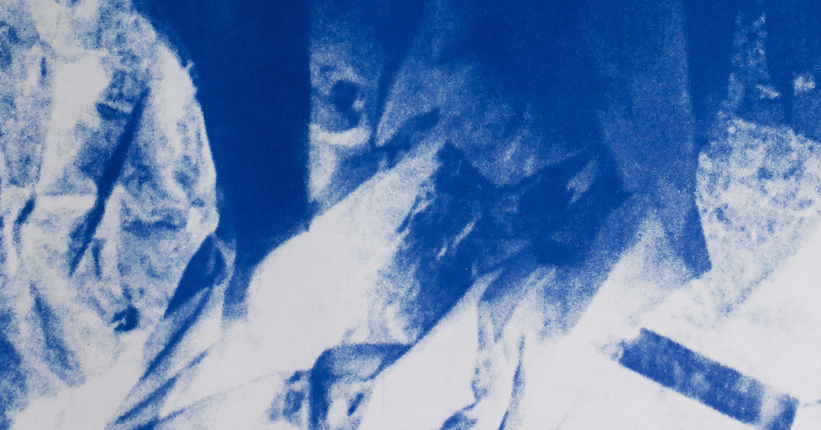 Alfredo Pirri utilizza la cianotipia – tecnica storicamente legata alla registrazione della luce – come strumento di riflessione sulla conservazione e l’alterazione dell’immagine. Il suo blu intenso, con cui lo spettatore si trova a confronto, trattiene lo sguardo e lo cattura. È il colore di una memoria che ha rinunciato alla forma compiuta per farsi traccia e impronta. Dei 144 fogli realizzati da Pirri, 130 documentano fasi di lavorazione e materiali residui, mentre 14 sono ottenuti tramite l’impressione diretta di piume esposte ai raggi UV. Le immagini oscillano tra riconoscibilità e astrazione, evocando forme vegetali che rimandano alle sperimentazioni ottocentesche di Anna Atkins.