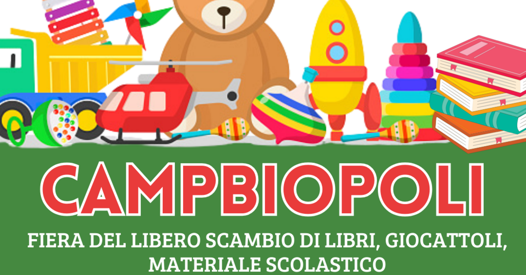 Campbiopoli è una fiera di libero scambio dedicata ai bambini e ai ragazzi, offrendo loro l’opportunità di scambiare libri, giocattoli e materiale scolastico. Questo evento nasce con l’obiettivo di promuovere il riutilizzo, il rispetto per l’ambiente e il valore della condivisione, creando un momento di incontro e socializzazione per i più giovani.