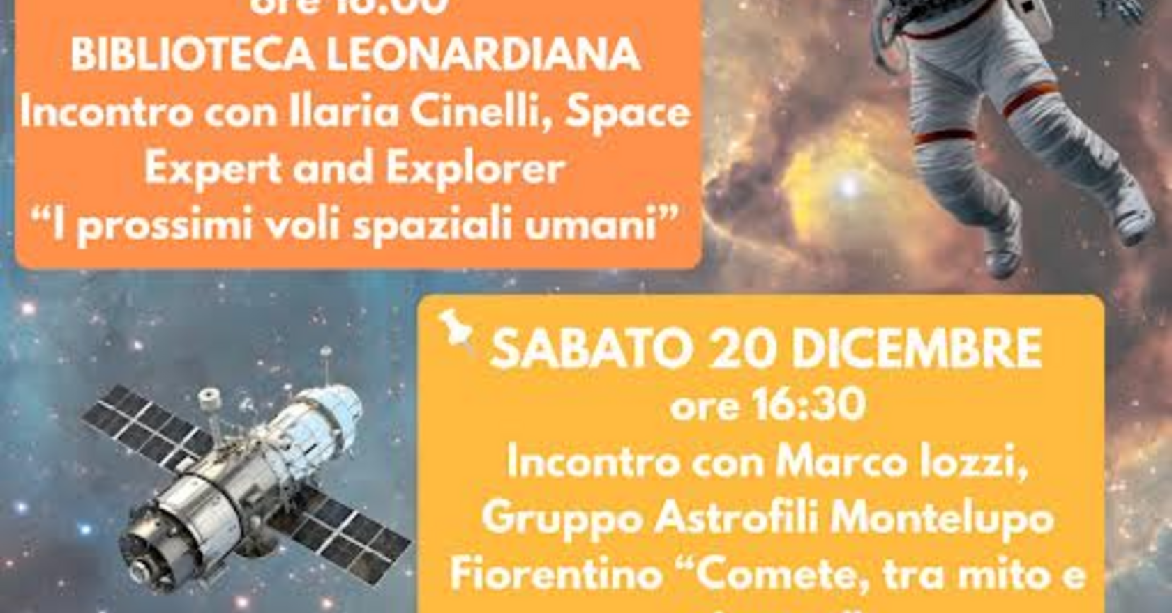 Con un ideale passaggio di testimone dall'Anno del Volo (il 2025) all'Anno dell'Ingegno (il 2026), il Comune di Vinci ha collaborato con il Club per l'Unesco di Vinci e il Gruppo Astrofili di Montelupo Fiorentino, che hanno organizzato la Festa dello spazio, in programma sabato 13, domenica 14 e sabato 20 dicembre 2025 in Biblioteca Leonardiana, con la partecipazione di personaggi di spicco del mondo aerospaziale italiano.