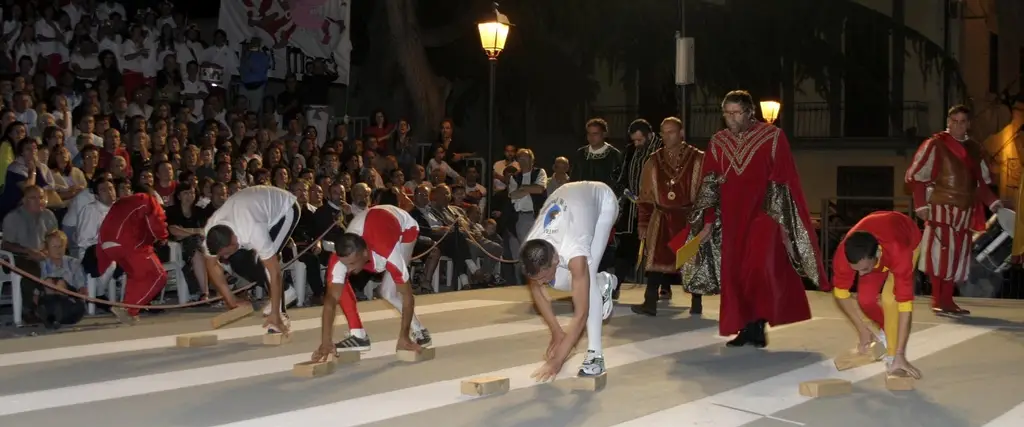 Le Contrade di Porta Caracosta, Porta Fiorentina, Porta al Palagio e Porta Santa Maria al Pozzolo si disputano il “Cencio” nei giochi della Balestra, Troppoli (una specie di mattone in legno), Bigoncia, Anelli e Tiro della Fune e lancio degli anelli: quest' ultima gara è riservata alle donne.