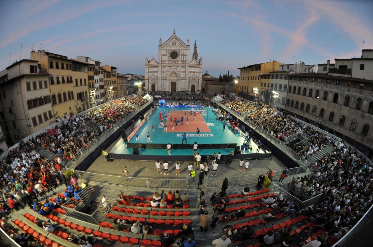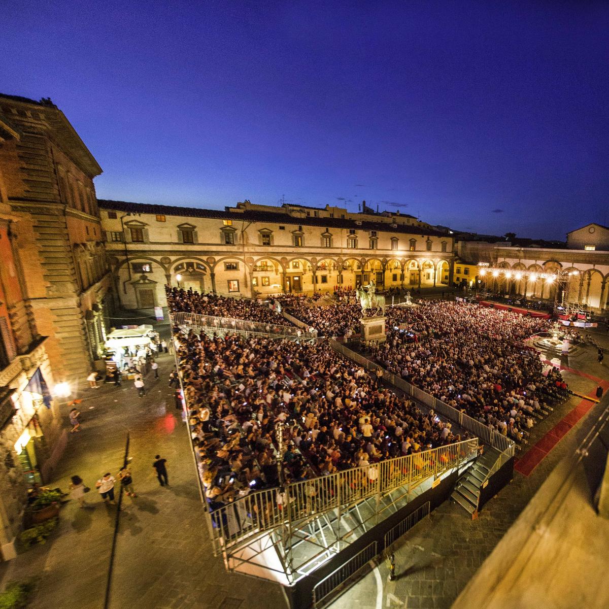 Artemio Franchi e lo spettacolo in piazza Santissima Annunziata.